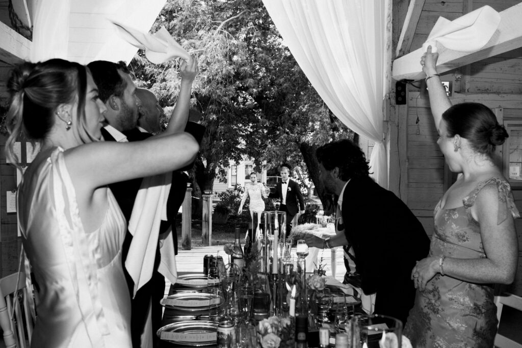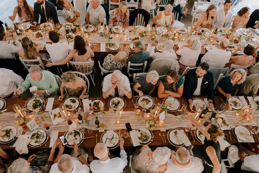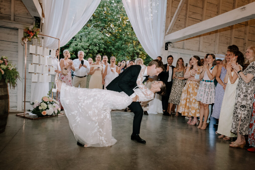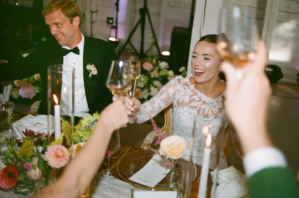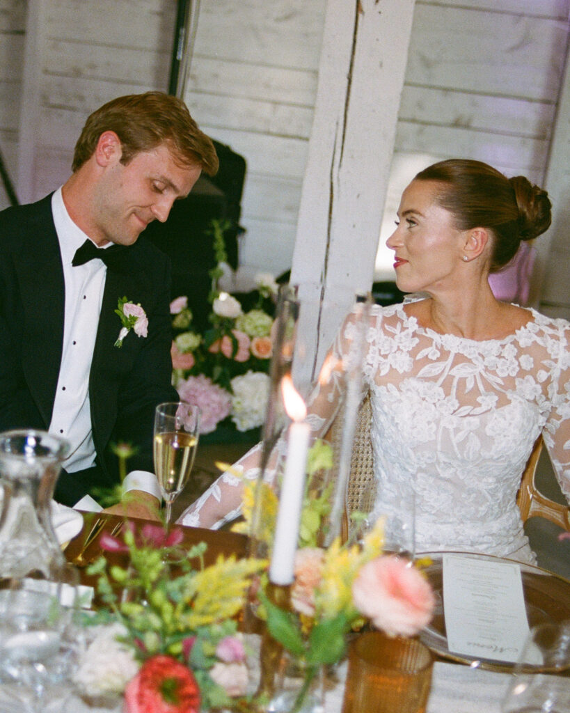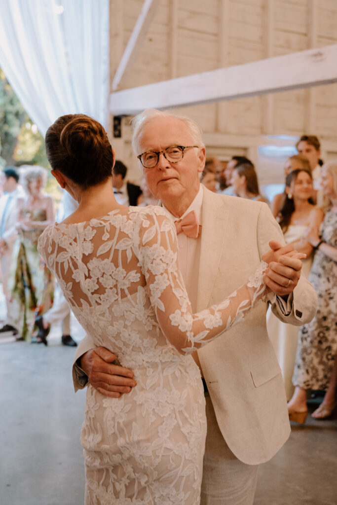 The bride had two wedding dresses—her party dress was the dress her Mother was married in. She had it shortened and tailored for her wedding which was such a nice way to include something old and borrowed.